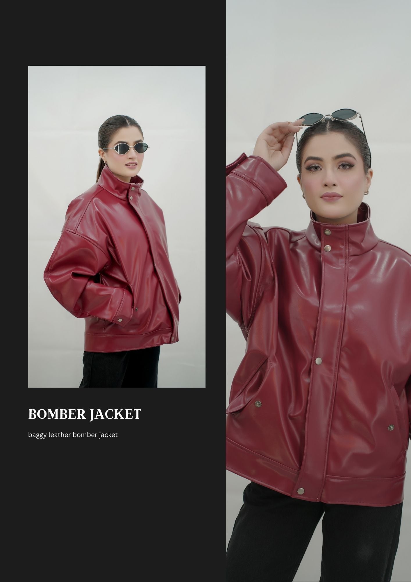 Make a bold statement with this Oversized PU Leather Bomber Jacket in vibrant red! With its oversized fit and sleek design, it's perfect for adding a pop of color to any outfit. The PU leather exterior offers an edgy, stylish touch, while the soft polyester lining ensures comfort. Pair it with jeans and boots for a standout look that's effortlessly cool.