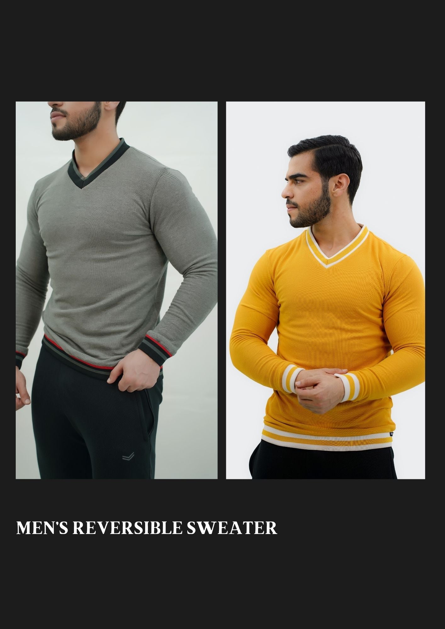 Get a Great Casual Look With This Mustard Long-Sleeve Reversible V Neck Sweater Premium Quality With Intricate Colour Block Ribbed. This Pique V Neck Offers a Warm And Stylish Layer To Keep Out The Cold. An Ideal Everyday Piece, Thanks To Its Versatility And Style.