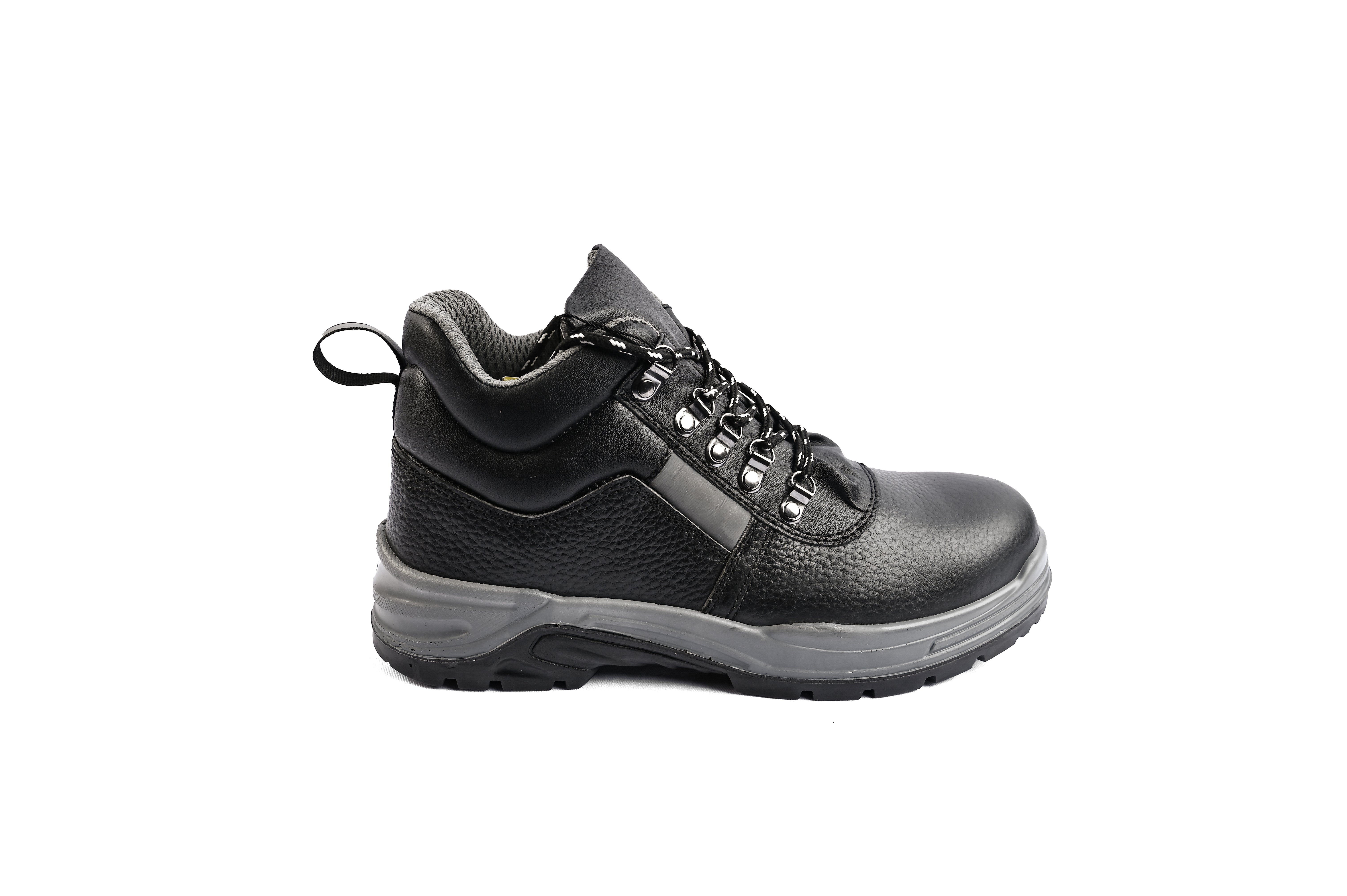 Introducing SteelGuard Black Leather Work Boots - the ultimate protection for your feet. Made with steel components and durable leather, these boots provide maximum safety and comfort. Ideal for tough jobs, they offer 100% protection from workplace hazards. Invest in your safety with SteelGuard.